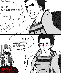 関が原組のものはよくみるので満足できるんだけど、家康と信玄や幸村が一緒のものをほとんど見かけないから自分で描こうと思ったのになにも浮かばなくて困った;;;